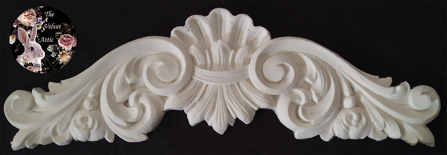 You can paint, glaze, dry brush, paint faux techniques and gild leaf them to suit your décor.  Seal them with The Velvet Attic Vintage Varnishes available in Matte, Satin or Gloss.  Adhere them using The Velvet Attic Vintage Craft Glue or Cornice Adhesive.